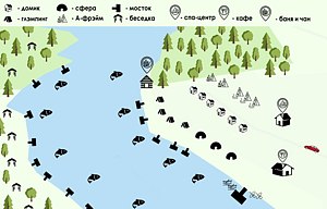 У отдыхающих будет возможность пожить в комфортных домиках рядом с большим озером и уютных экосферах с панорамным видом. К услугам гостей трофейная рыбалка без ограничений, прокат снастей и помощь егерей. Всего доступны 25 секторов для рыбалки. В распоряжении туристов Русская баня с выходом к озеру, целебная фитобочка, соляная комната и кафе с 3-разовым питанием.