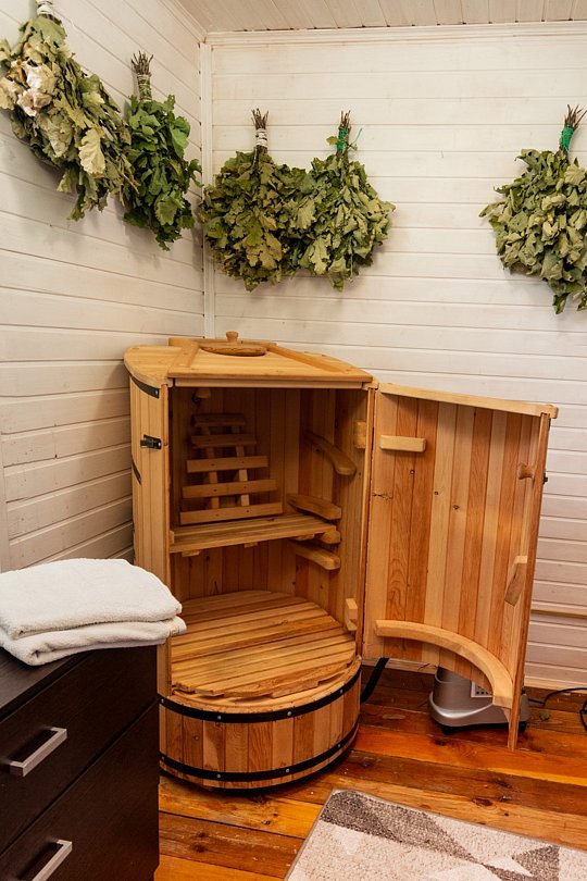 Инфраструктура: чан, зона отдыха, душ, дубовые веники, чай/угощенияРасположение: выход к озеруМинимальное время аренды: 2 часаВремя работы: до 24.00В бане парилка, душевая, санузел с душевой и комната отдыха 18 м2.