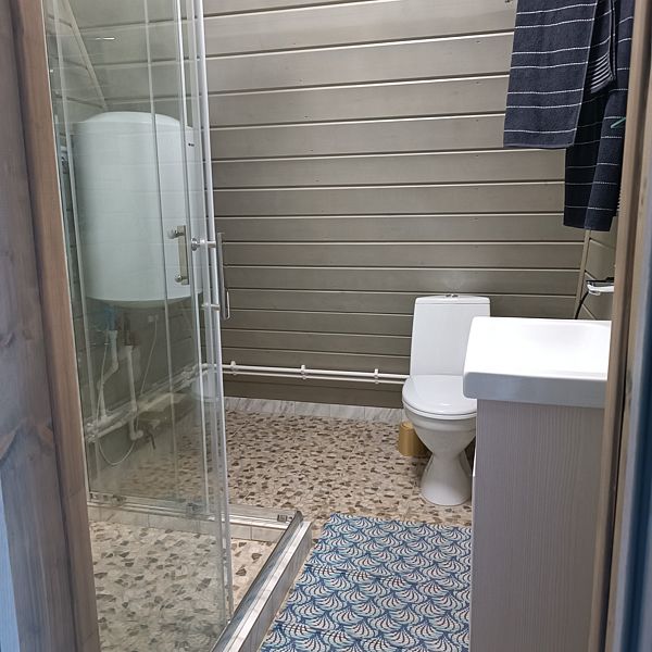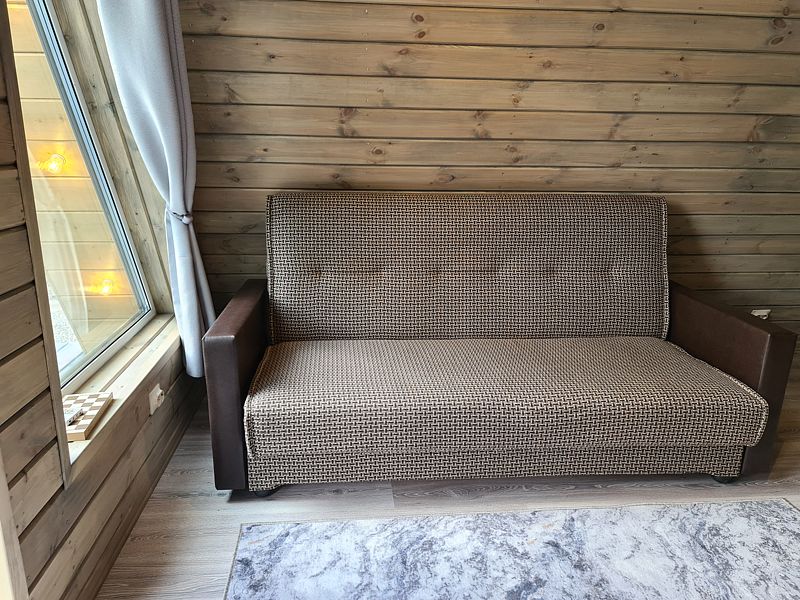 На первом этаже дома Вас встретит уютная гостиная, совмещенная с полностью оборудованной кухней. Для вашего отдыха предусмотрен двухместный раскладной диван. Поднявшись на второй этаж, Вы окажетесь в спальне с ортопедическим матрасом, который обеспечит крепкий и здоровый сон. Все необходимое — постельное белье и полотенца — уже ожидает Вас.