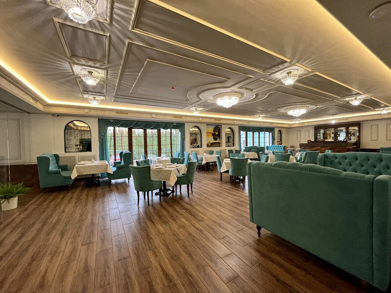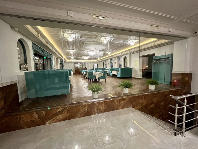 Главная новость - наконец, заработал их ресторан не только на завтрак, а на полный день, до 23-00 (кухня до 22-00). Шеф-повар отличный. Ужинали два раза - кухня выше всяких похвал. Цены примерно, как в аналогичных заведениях (может, чуть выше). Завтрак выбирается из 4-х сетов. Пробовали французский и детский. Все яичницы, скрамблы, сырники превосходны. Круассан с кремом разочаровал - холодный, неинтересный. Минус - маленькие чашки для чая. Те же пакетики Гринфилд, что и в номерах. За 800 р. (цена сета) дороговато. Зато детский завтрак оказался больше французского.