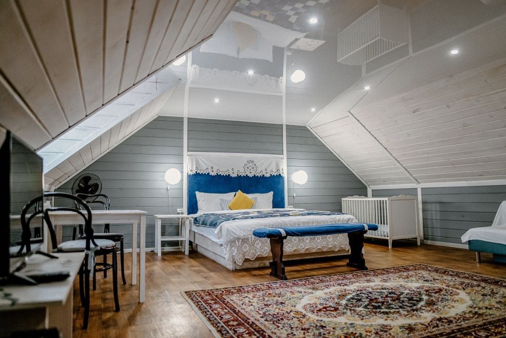 К размещению подготовлены просторные номера, оформленные в индивидуальном стиле. Каждый укомплектован качественной мебелью и техникой. Собственная ванная комната оснащена набором современной сантехники. В пользование предоставляются полотенца и гигиенические принадлежности.