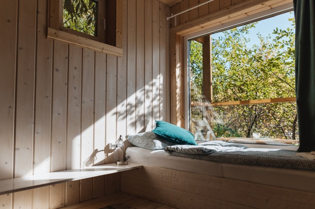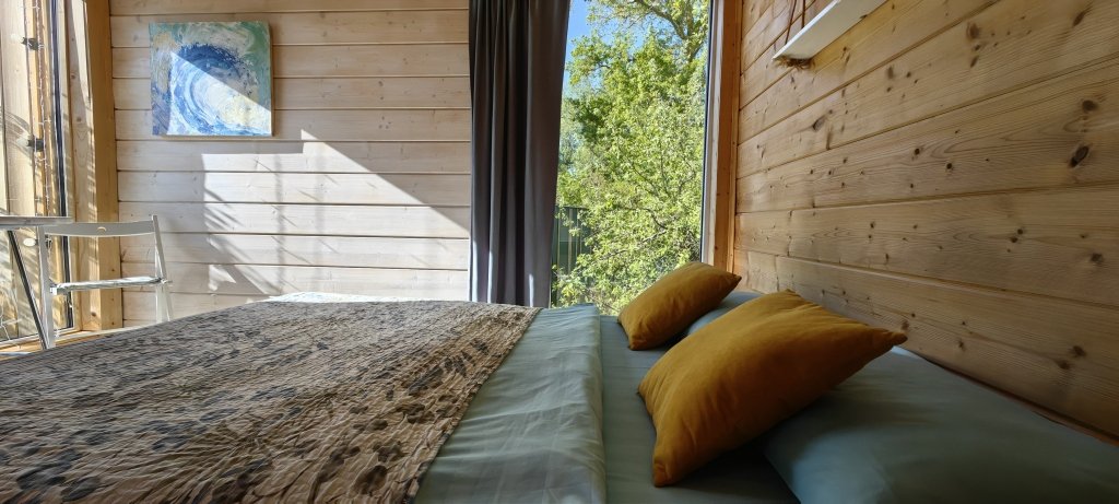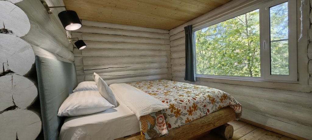 Двухместное Домик на дереве Ореховый с балконом двуспальная кровать