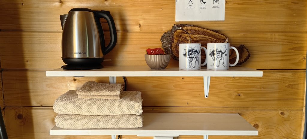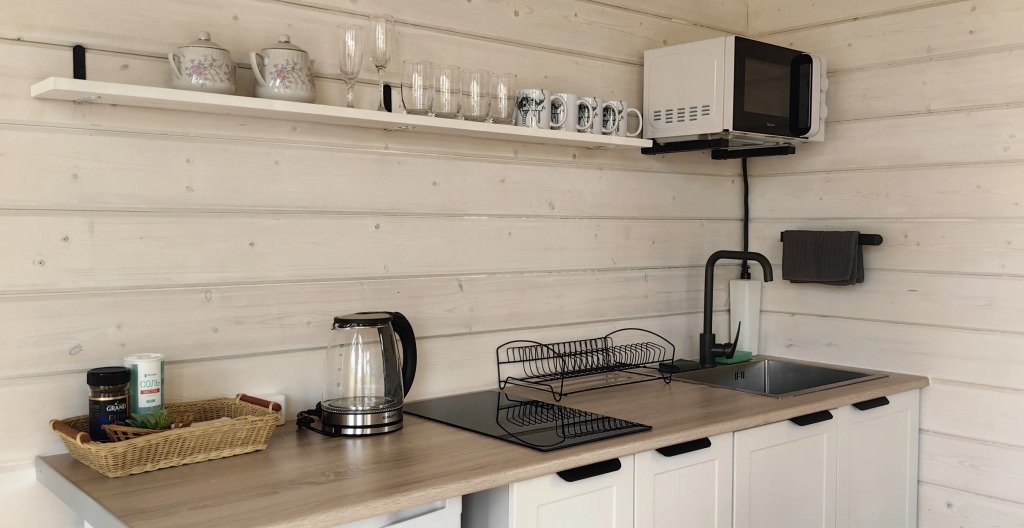 Возле каждого домика стоит мангал. Все остальное для мангала мы рекомендуем гостям привезти с собой: уголь, решетку/шампура.