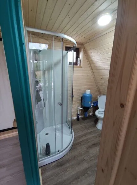 - В каждом доме персональный туалет с душевой кабиной и всем необходимым для проживания.