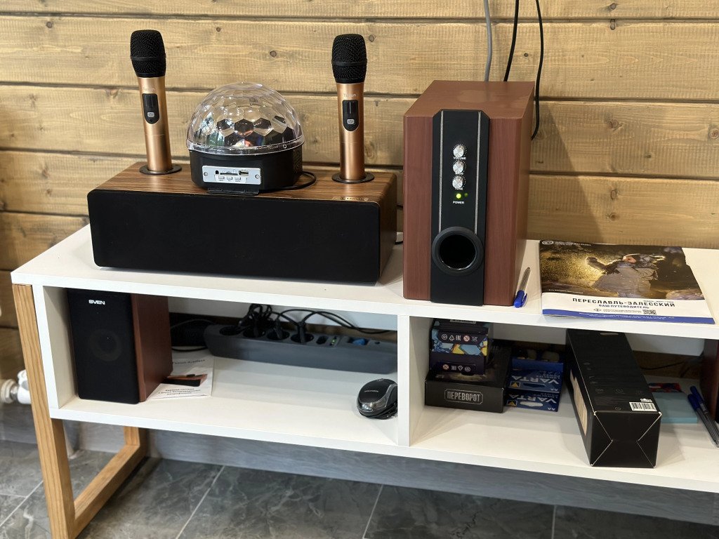 Скучно не будет, ведь в коттедже к услугам отдыхающих караоке, площадка для пикника и площадка для барбекю. Любимца не придётся оставлять дома: разрешается проживание с питомцем за дополнительную плату. А ещё в распоряжении гостей гладильные услуги. Персонал коттеджа говорит на английском и русском.