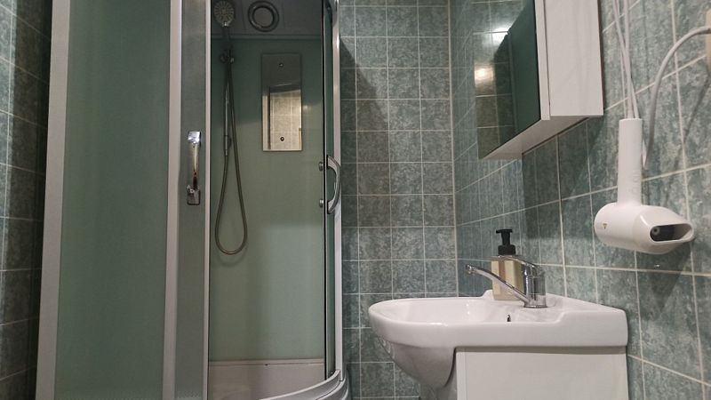 Комната расположена на 2 этаже, санузел (душевая кабина, раковина, туалет и биде) в номере, при необходимости можно воспользоваться санузлом на 1 этаже.