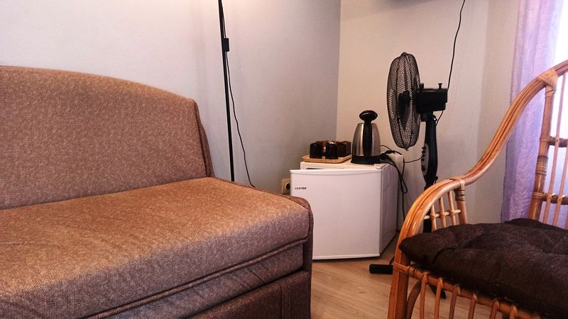 Основные удобства: свет, 2 раскладушки (70*190), постельные принадлежности, столик, чайник, вентилятор.