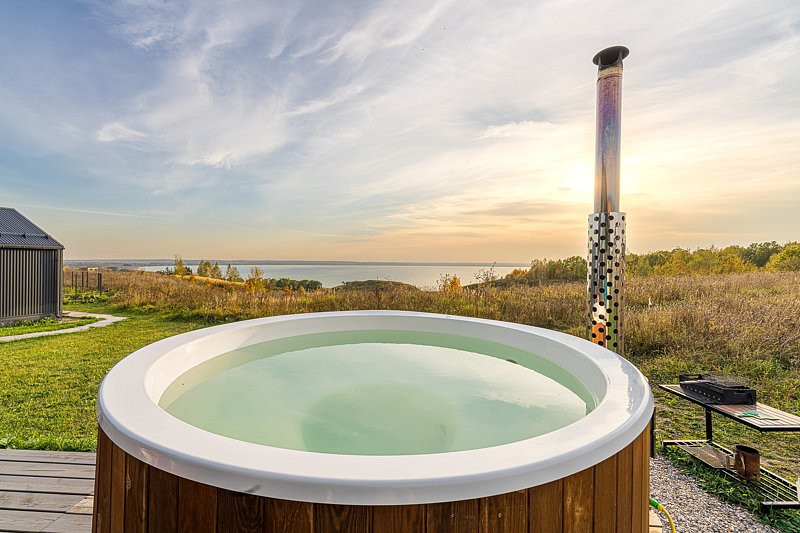 Современная купель на дровяной печи с аэромассажем и подсветкой.
