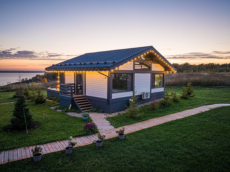 Уютная вилла с панорамным остеклением и прямым видом на Плещеево озеро.