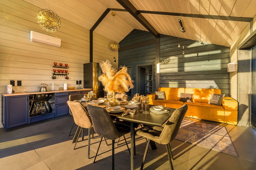 Каждый дом на базе отдыха обеспечивает все необходимое для комфортного проживания. Внутри вы найдете просторные и уютные комнаты, оборудованные всем необходимым. Кухня в каждом коттедже полностью оборудована, чтобы вы могли готовить свои любимые блюда. Ванная комната оснащена современными удобствами, а комфортабельные спальни предлагают хороший отдых после долгого дня активного времяпрепровождения.