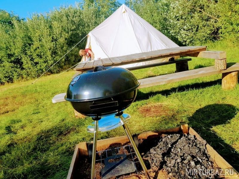 У каждого экошатра есть свой столик и барбекю гриль для приготовления еды на улице.