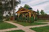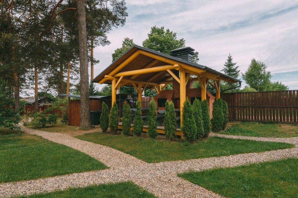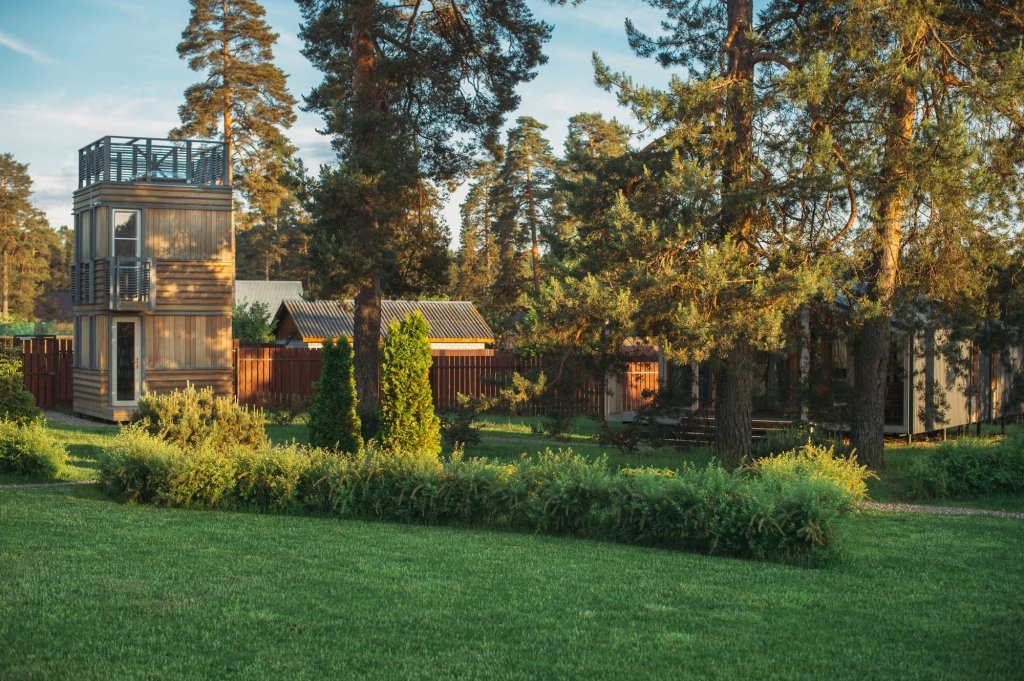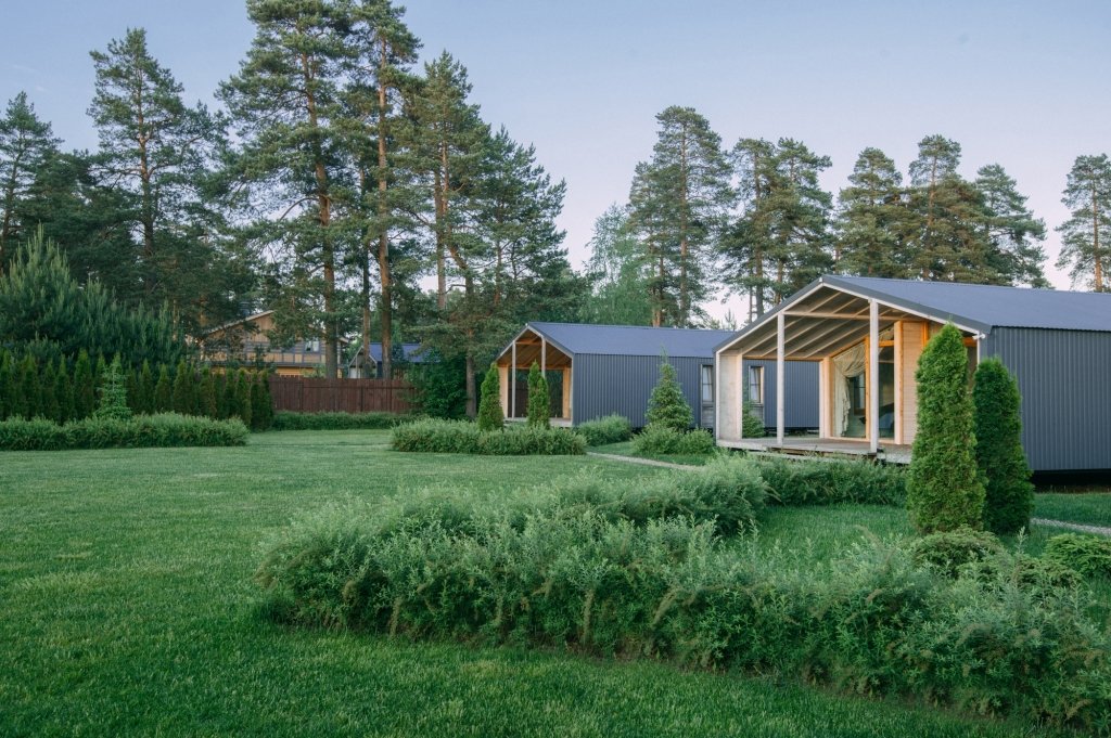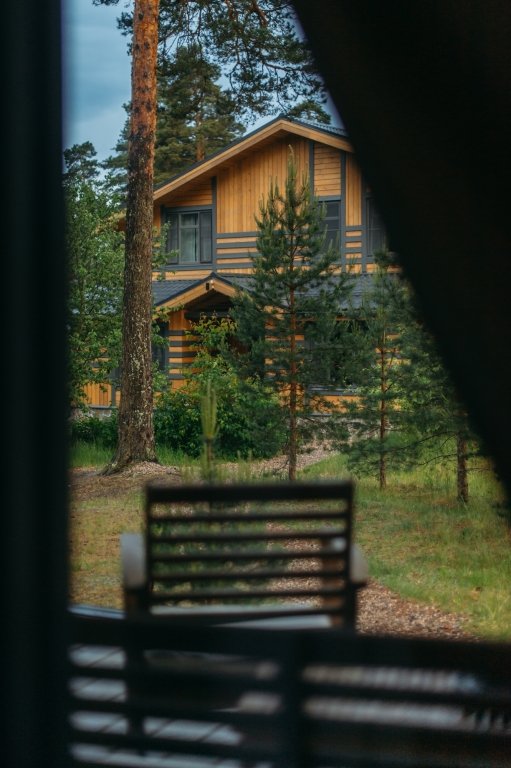 На территории расположены: мангальные зоны, оборудованые навесом, детская площадка, скалодром для детей и взрослых, воркаут, бадминтонная площадка, крытая площадка для настольного тенниса, прокат велосипедов, собственный пляж с прокатом лодок, сап-досок, библиотека, зал для мероприятий, детская комната.