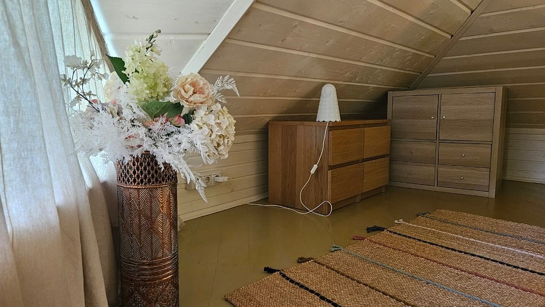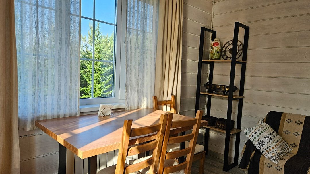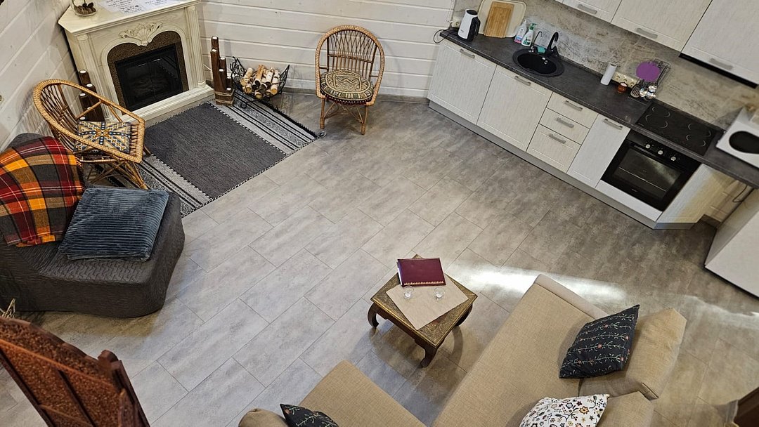 Дом ВеЖа-изысканный тихий эко-уголок в славянском стиле, в историческом центре Переславля, в шаговой доступности от всех достопримечательностей и Плещеева озера. Дом из бруса-76 кв.м, расположен на 10 сотках дендропарка, в конце участка, прямо на изгибе реки Трубеж. Здесь особая атмосфера и своя таинственная аура. Атмосфера уюта, тишины, камерности, спокойствия, созерцания и гармонии. Если хотите уединится, то это к нам. Дом построен в стиле А-фрейм, высота потолков в коньке 5.5 метра. Здесь очень много чистого воздуха, простора и свободы , а спальное место наверху, с видом на пышные ёлки и бескрайнее небо Переславля. На первом этаже : прихожая, гостинная с обеденным столом , двухспальным диваном, раскладывающимся креслом, электрическим камином, кухней-столовой, санузлом , душевой комнатой. На втором этаже: антресольная спальня с двухспальной кроватью , с ортопедическим матрасом. Есть все необходимое для комфортного длительного, короткого отдыха и работы: Парковка для авто. Устойчивый wi-fi. Телевизор, холодильник, духовой шкаф, варочная панель, стиральная машина, утюг, сушка, фен, постельное белье, полотенца. На территории ухоженного дендропарка, более 350 крупномеров сосен, елей, можжевельников, лиственниц, кленов, самшиты, магнолия. Напротив дома шикарная зона кострища, мангальная зона. За весь срок проживания взымается обеспечительный залог в размере 7000 рублей, который возвращается после отъезда, при условии полной сохранности имущества.Услуги и удобства