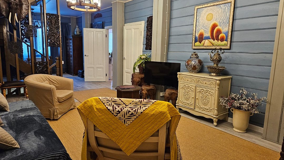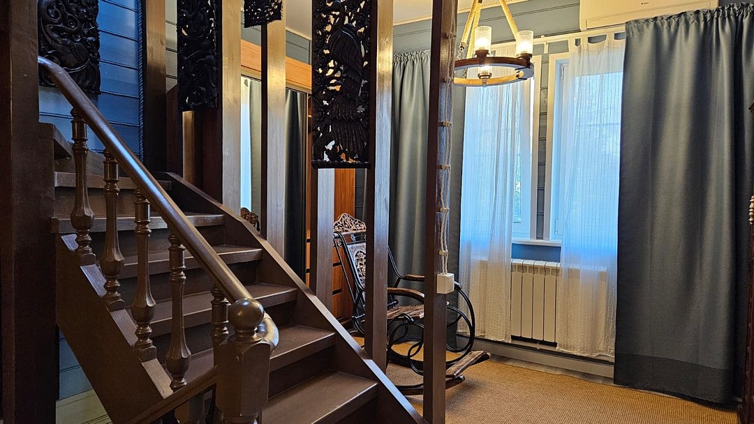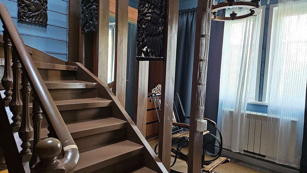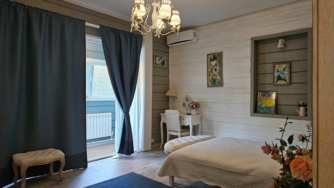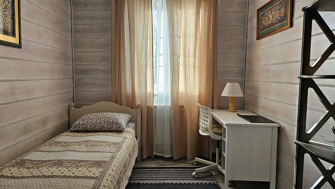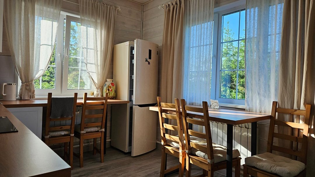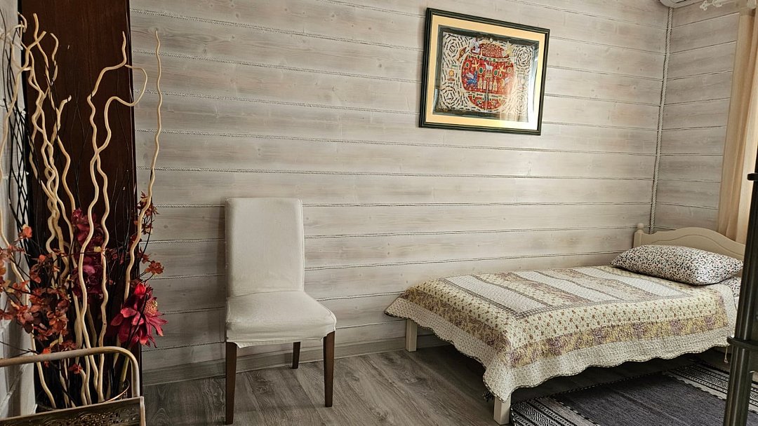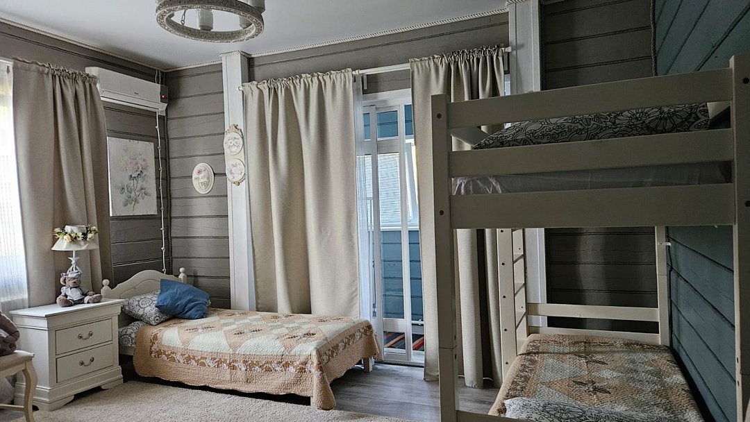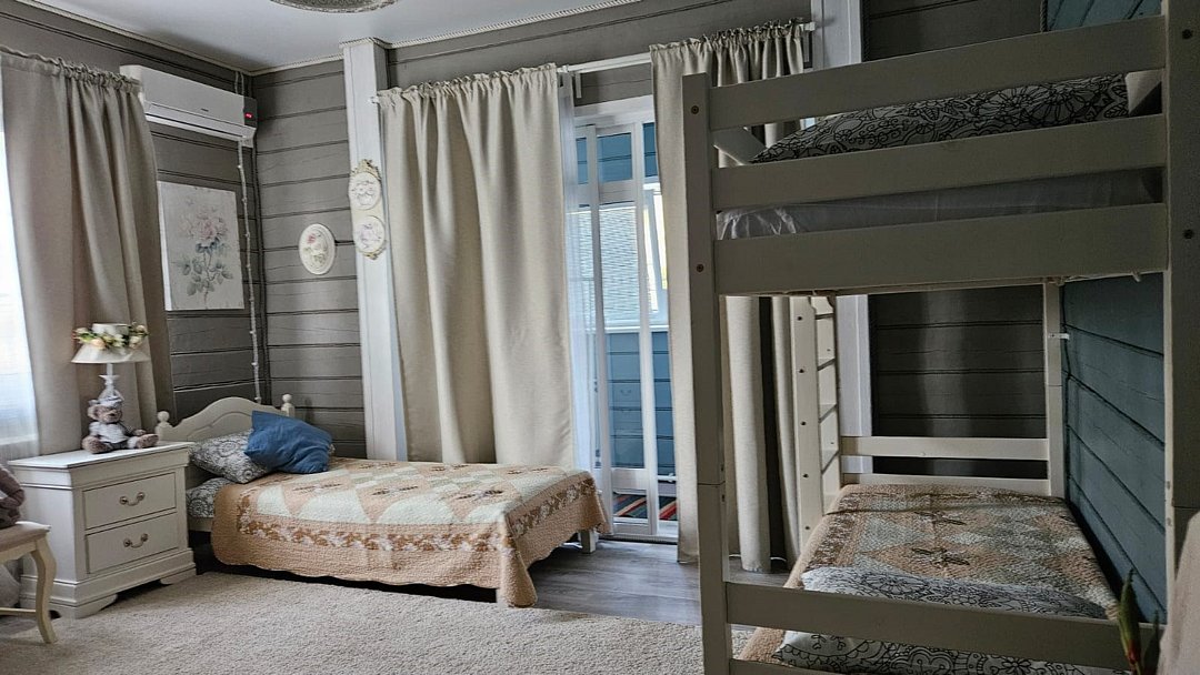 Большой дом из бруса "Жива", в гостевом комплексе "Залесская дача", расположен на 20 сотках, в историческом центре Переславля-Залесского. Площадь дома - 486 кв. м. Сдается полностью 2 и 3 этаж дома , площадью 215 кв.м. , с отдельным входом на территорию дома ( собственная калитка), и отдельным, изолированным входом в сам дом. Это жемчужина нашего комплекса с изолированными комнатами, с двумя отдельными спальнями, кабинетом, гостиной, оборудованной кухней, двумя отдельными совмещенными с душевой кабиной санузлами и собственным спортивным залом ( 85 кв.м.-на 3 этаже)! Этот дом можем сдать на ретрит или расстановки от двух суток на 12 человек!! Большая крытая беседка в распоряжении ТОЛЬКО Большого дома ЖиВа. Дом расположен в историческом центре Переславля-Залесского, на берегу реки Трубеж, в окружении огромных сосен и елей, с повышенным количеством фитонцидов. Наш гостевой дом предназначен для спокойного, семейного отдыха, творческого поиска, вдохновения, работы над собой и перезагрузки. Здесь комфортно отдохнуть на выходные и побыть в отпуске, длительный срок. Изысканный тихий эко-уголок в славянском стиле. Конечно, есть телевизор и стабильный wi-fi для работы, но рекомендуем вам отдохнуть от них и перезагрузиться в тишине и благости этого гостеприимного, душевного дома. Гарантируем, что вас здесь никто не потревожит. Для шумных компаний, мероприятий и отмечания праздников не сдается. Этот гостевой дом рассчитан на семью до 6-7 человек. Но можем за дополнительную плату организовать еще места. В пешей доступности исторические достопримечательности, Плещеево озеро, рестораны, со вкусной едой, магазины, аптеки. На территории 12 соток свой дендропарк с высокорослыми елями, соснами, лиственницами, можжевельником, магнолиями и самшитом. За тихим, спокойным, настоящим отдыхом к нам... Подробнее о Большом доме ЖиВа: 1. этаж огромная прихожая со встроенными шкафами, лестница на 2 этаж. 2 этаж , гостинная с раскладным диваном, креслами, телевизором. 1 спальня- с двухспальной кроватью, балконом и видом на сад и реку Трубеж. 2-я спальня : две односпальные кровати, 1 двухярусная кровать, с балконом и видом на сад и реку, 3 спальня - две двухярусные кровати, вид на сад, кабинет - односпальная кровать, рабочий стол, с видом на сад, оборудованная кухня, два санузла с душевыми кабинами , туалетами, биде, стиральная машина., лестница на 3 этаж- в спортивный зал. 3 этаж - великолепный спортивный , ретритный зал 85 кв.м!, с многочисленными окнами по всему периметру зала.Услуги и удобства