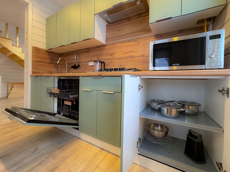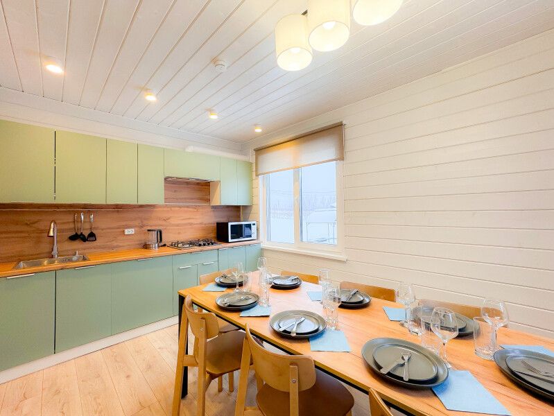Удобная планировка: 2 этажа, 4 отдельные спальни, 2 санузла, большая зона гостиная-кухня. Все необходимое для комфортного проживания: постельное белье, полотенца, посуда (для готовки и для сервировки), кухонный стартовый набор (средство для посудомойки, мыло для посуды, губка и тряпочка для стола), мыло для рук, 6 шампуров, туалетная бумага. Бытовая техника и бытовые мелочи, делающие отдых удобным: посудомоечная машина, стиральная машина, микроволновая печь, утюг, гладильная доска, сушилка для белья.