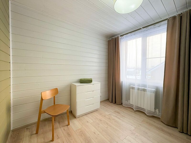 В доме есть всё, что необходимо для отдыха: и посуда, и бельё-полотенца и мебель - всё новое, чистое, приятное и удобное. На первом этаже большое пространство с кухней для общения, 1 спальня, санузел и выход на веранду, на втором этаже 3 спальни и санузел. Продукты мы привезли с собой и готовили сами. Недалеко есть кафе, но мы туда не дошли. Озеро в минуте ходьбы от домика, с мостками и для купания, и для ловли рыбы, есть отсыпанный песочком пляжик. Рядом и поле, и лес - и где погулять, и где посидеть - место волшебное!