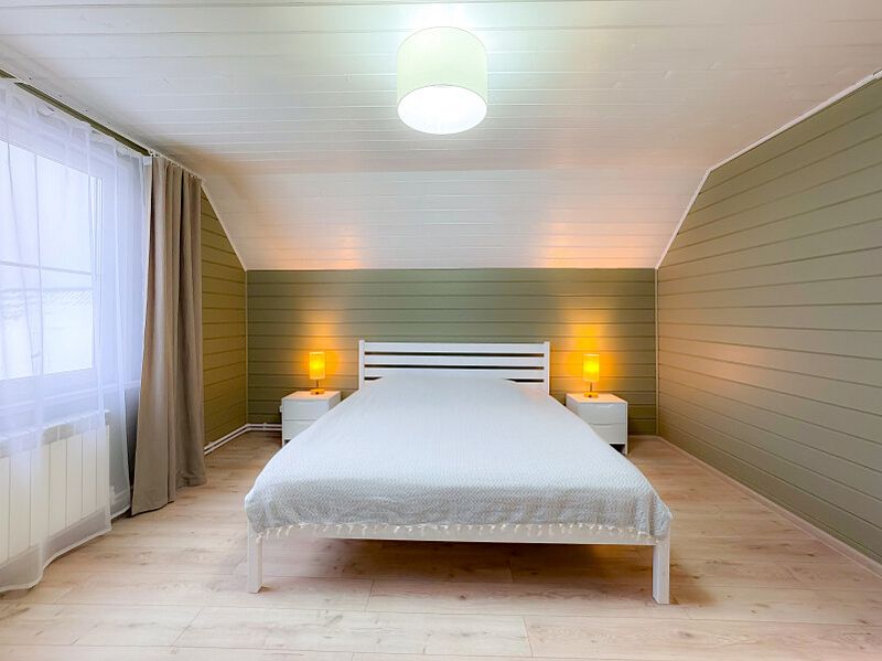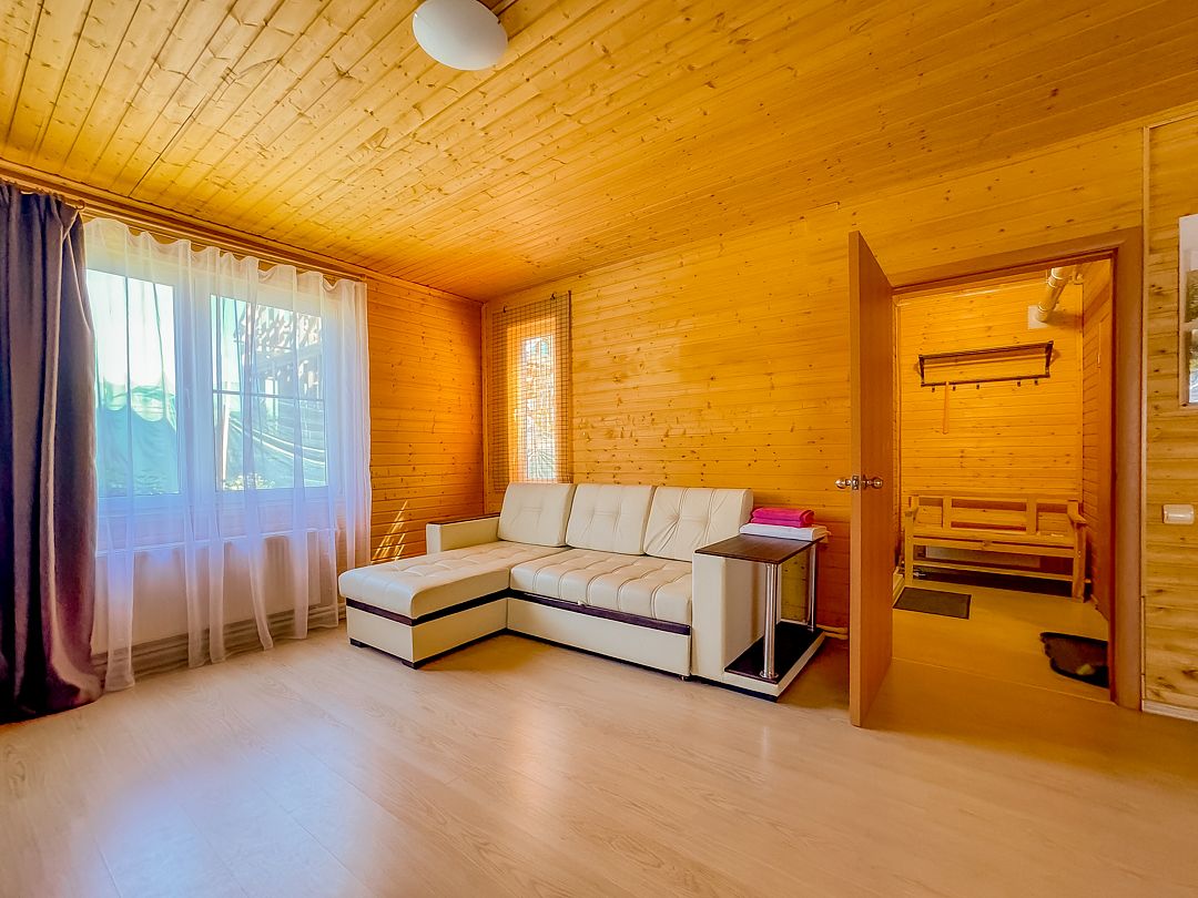 Улучшенный двухэтажных дом с 4 спальнями на 10 человек. Площадь дома 130 кв.м. Интерьер домов выполнен в экостиле с яркими акцентами: просторные, светлые помещения, декорированные натуральными материалами. У дома есть крытая веранда и мангал.