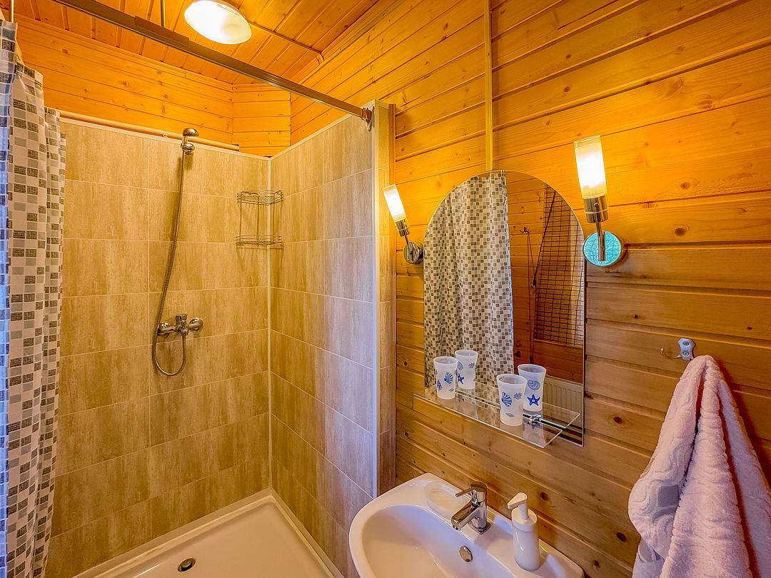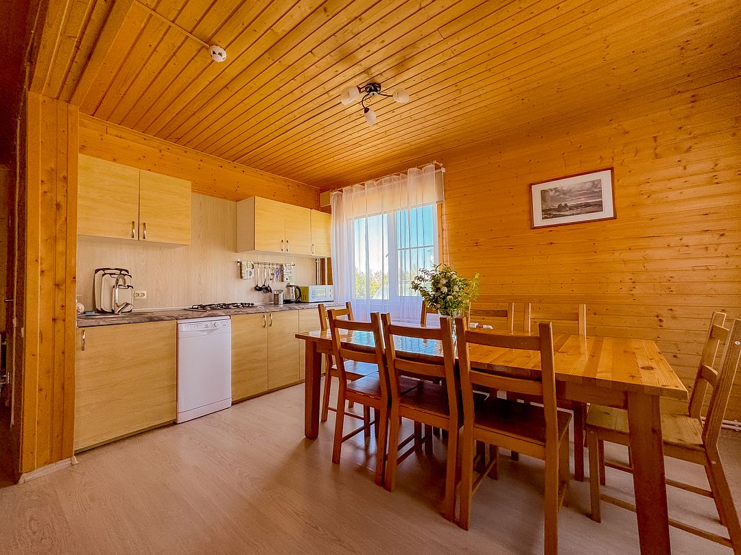 К размещению предлагаются 6 двухэтажных коттеджей на 10 человек. Среди удобств комфортные спальные места, спутниковое телевидение, хороший Wi-Fi, стиральная машина, душ, фен и комплект полотенец.