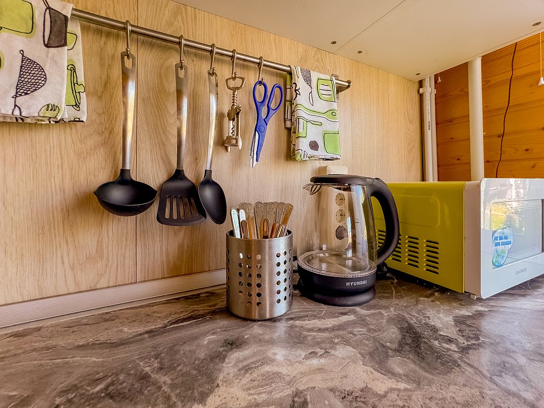 Все необходимое для комфортного проживания ждет вас здесь: постельное белье, полотенца, посуда (для готовки и для сервировки), кухонный стартовый набор (средство для посудомойки, мыло для посуды, губка и тряпочка для стола), мыло для рук, 6 шампуров, туалетная бумага. Бытовая техника и бытовые мелочи, делающие отдых удобным: посудомоечная машина, стиральная машина, микроволновая печь, утюг, гладильная доска, сушилка для белья.