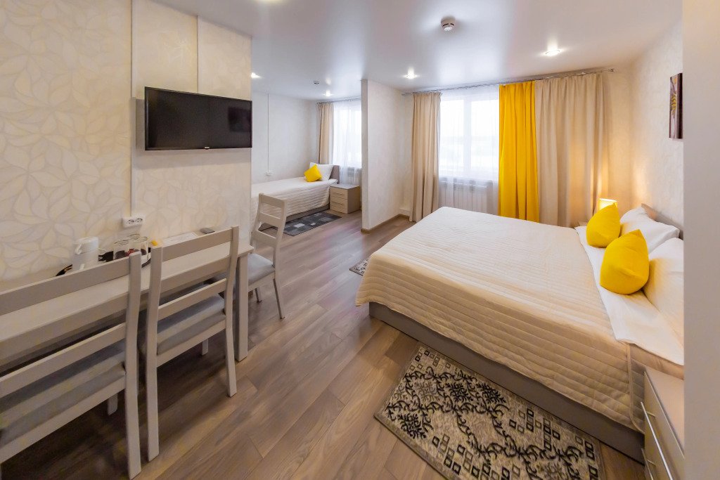 В номере вас будут ждать телевизор и халат. Оснащение зависит от выбранной категории номера.