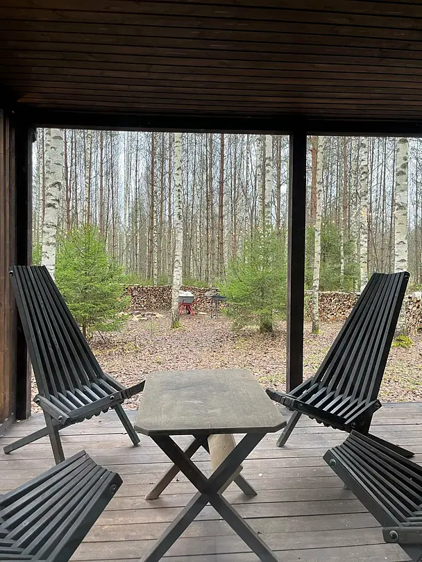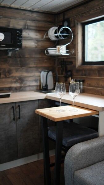 Вас ожидают комфортабельные эко-домики с уютной атмосферой и всеми необходимыми для отдыха удобствами. Каждое жилье имеет просторную террасу, панорамное окно с великолепным видом на хвойный лес, двуспальную кровать, раскладной диван, мини-кухню и ванную комнату с душем.