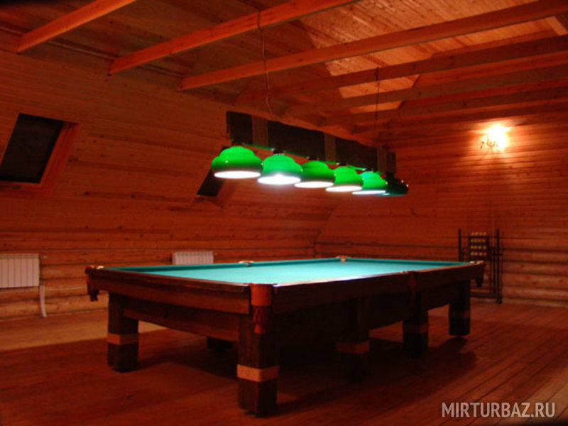 К услугам отдыхающих тир, три бани, ресторан, бильярд, экскурсии, охота, рыбалка, егерское обслуживание, аренда спортивного инвентаря.