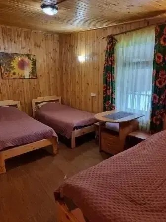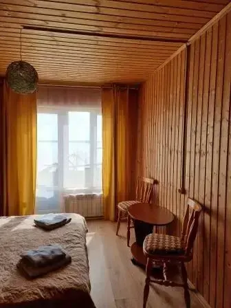 Номер расположен на 2 этаже, в номере: 1 диван-кровать и 1 большая двуспальная кровать.