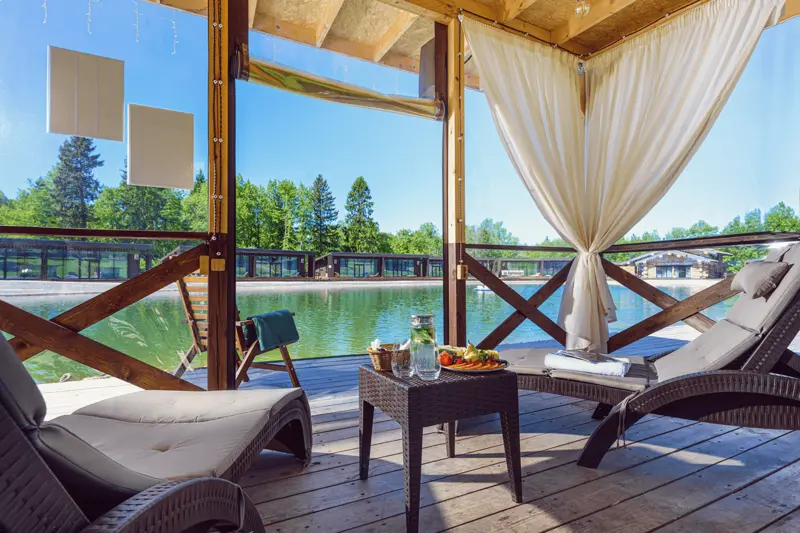 Просторный бассейн Infinity с парной и современный тренажёрный зал, разделённый на зоны силовых тренировок, кардионагрузок и TRX, составляют достойную конкуренцию озеру. Ресторан «Изба» идеально подходит для истинных ценителей русской кухни, а караоке, сигарная комната, бани с купелями и расслабляющий массаж добавят незабываемые впечатления к вашему отдыху.