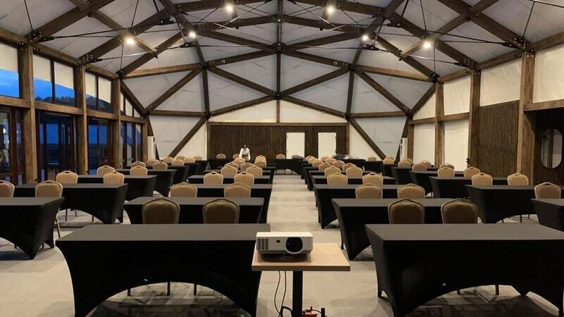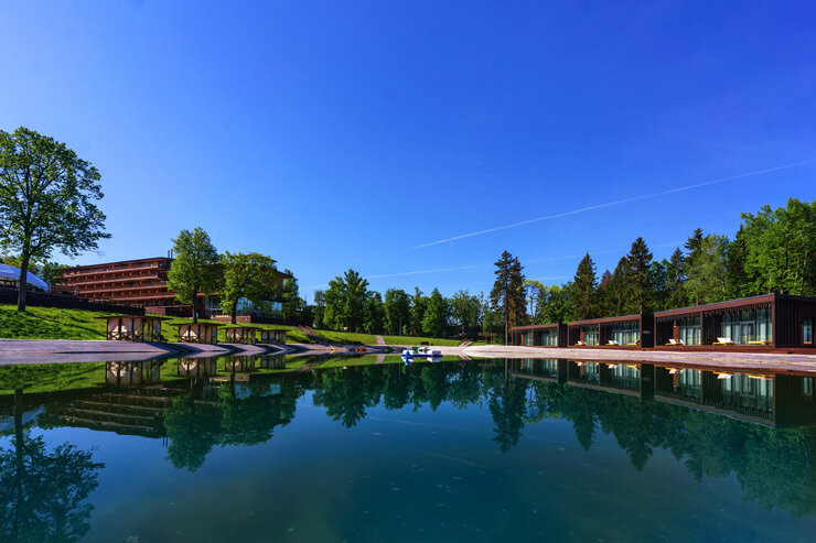 Читать полностьюБанкетный зал Ozero с панорамным остеклением идеально подойдёт для проведения банкетов с особым статусом на 300 человек, а терраса на 120 м² с завораживающим видом на озеро и закаты может быть сервирована под фуршеты или Гала-ужины под звёздным небом. В банкетном зале предусмотрена сцена, отдельная уборная, а также кухня. Для закрытых тематических мероприятий, зал располагает подогреваемым бассейном с саунами.
