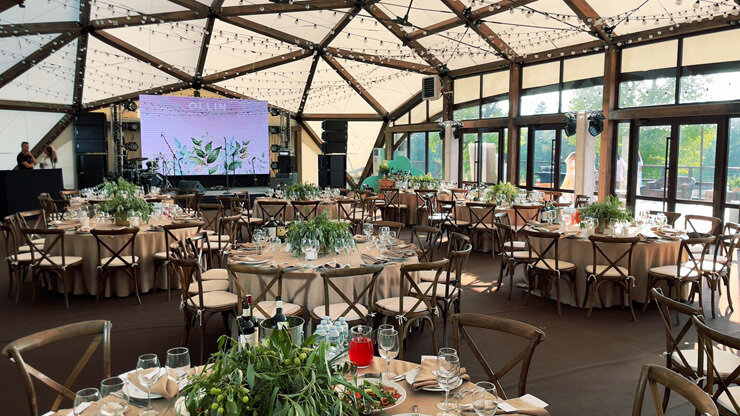 Банкетный зал Ozero с панорамным остеклением идеально подойдёт для проведения банкетов с особым статусом на 300 человек, а терраса на 120 м² с завораживающим видом на озеро и закаты может быть сервирована под фуршеты или Гала-ужины под звёздным небом. В банкетном зале предусмотрена сцена, отдельная уборная, а также кухня. Для закрытых тематических мероприятий, зал располагает подогреваемым бассейном с саунами.