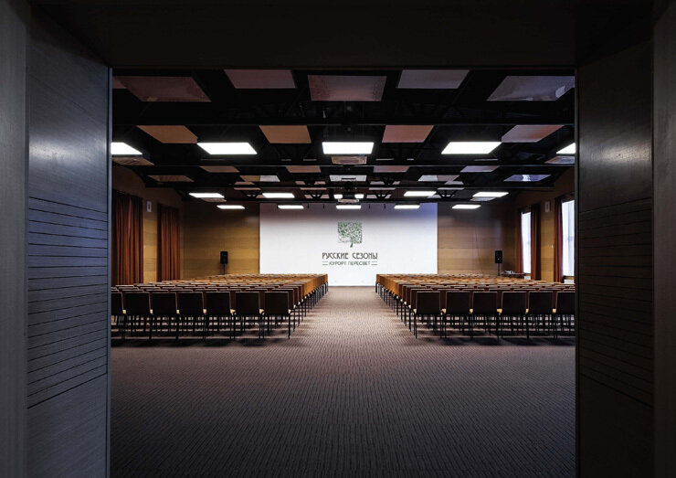 Для мероприятий до 1200 человек на Курорте предусмотрен многофункциональный банкетный зал общей площадью 1400 кв.м. Для фуршетов в непосредственной близости располагается площадь с поющим фонтаном, музыкальной каруселью и LED экраном.