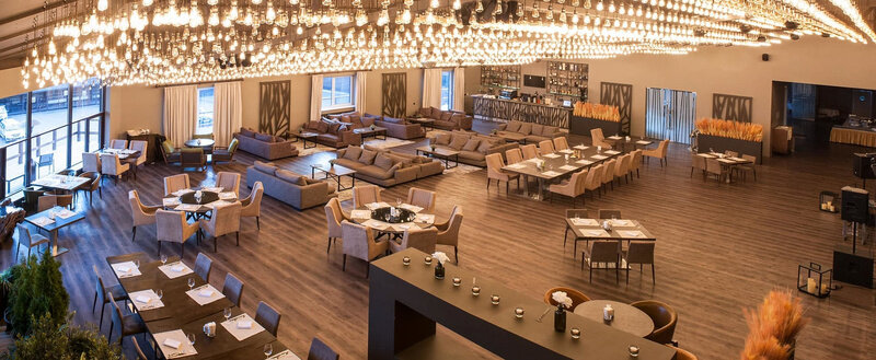 Находится на 1 этаже Спа Отеля. Современный банкетный зал с панорамными окнами и возможностью проведения банкетов до 500 человек. Элегантный и сдержанный интерьер создаст приятную атмосферу для любого мероприятия или торжества. В зале предусмотрена сцена с профессиональным оборудованием, а также welcome-зона с барной стойкой для приветственного фуршета и танцев.