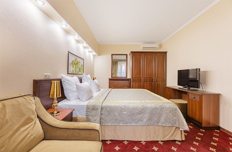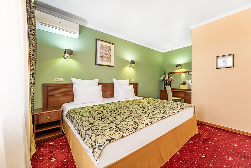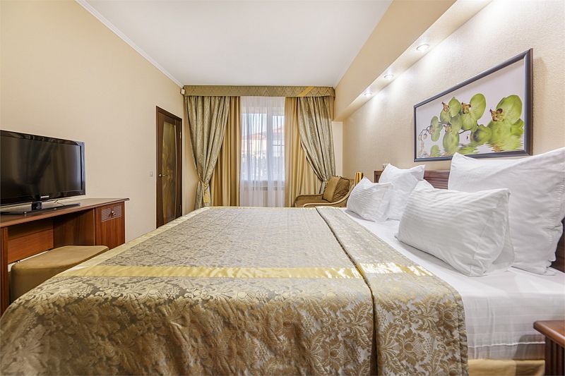 Просторный номер позволяет с комфортом разместить двоих гостей на основных местах, и одного Гостя на дополнительном месте. Ненавязчивый и классический интерьер поможет вам почувствовать себя уютно, а балкон просто создан для тихих вечеров в кругу семьи.
