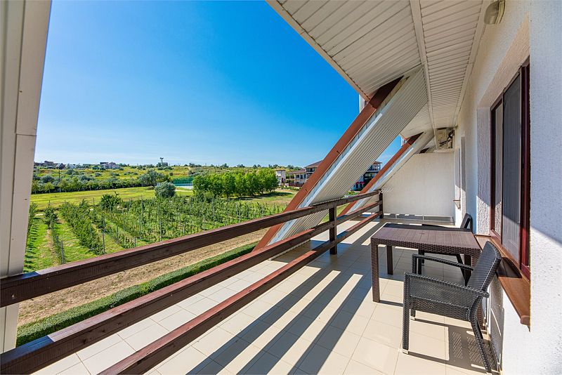 Приятный интерьер с яркими акцентами и небольшая площадь номера создают здесь ощущение уюта и комфорта. В номере имеется кресло кровать и балкон-терраса с ротанговой мебелью.