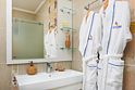 В ванной комнате (в данном номере есть второй санузел): душ, фен, косметическое зеркало, косметический набор, комплект полотенец (4 шт. на персону), халаты и тапочки.