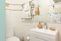 Очень тесная душевая с неработающим вентилятором, она же туалетная комната с мизерным умывальником и полочкой над ним, что полностью исключает умывание.