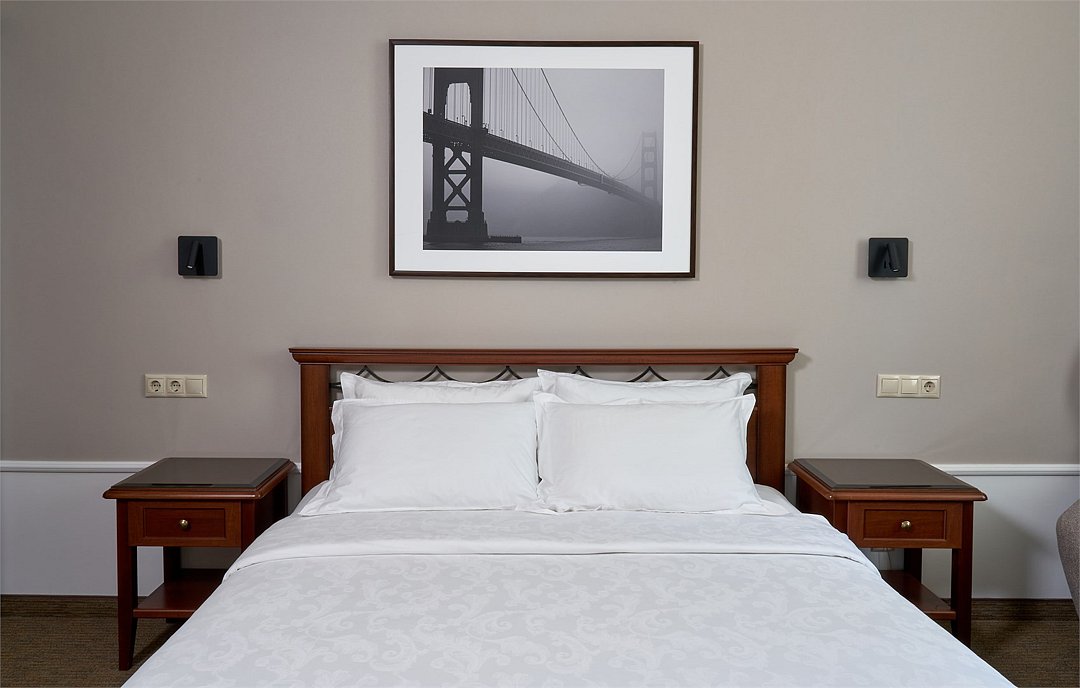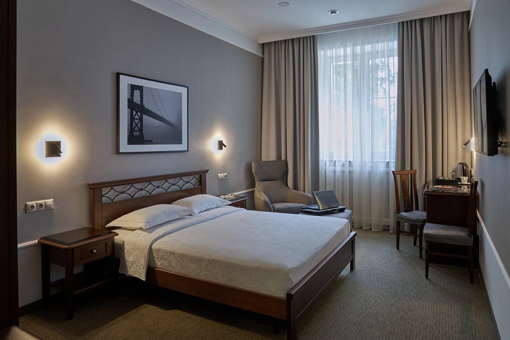 кабельное телевидение, Wi-Fi, телефон, холодильник, кондиционер, светильник, настольные лампы, фен, электронные замки, обогреватель, ванная комната, душевая кабина, ванна, водонагреватель, банные принадлежности, халаты, банные полотенца, тапочки, двуспальная кровать, ортопедический матрас, кресла, шкаф для одежды, вешалки, журнальный столик, письменный стол, багажная тумба, зеркало, мини-бар, письменные принадлежности, чайный набор, обслуживание номеров, информационная карта, меню, чайник, раковина, косметическое зеркало, питьевая вода, ковровое покрытие, отопление, душ, вид на город, кулер на этаже, вид во двор, высокие потолки, меню подушек, стаканы, кофейный столик, стул, тумба, туалетные средства, туалет, внутренний телефон, телевизор с плоским экраном, мини-холодильник, москитная сетка, гостиничная парфюмерия, номер для некурящих, антибактериальное средство для рук, гигиенический душ, чайная станция, бутилированная водаВ гостиничном номере