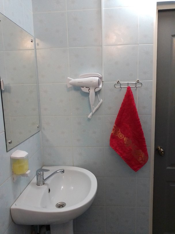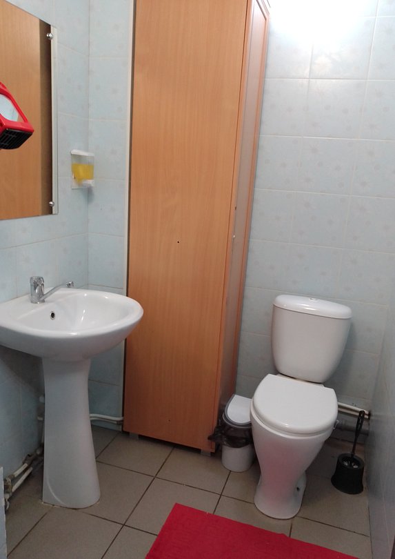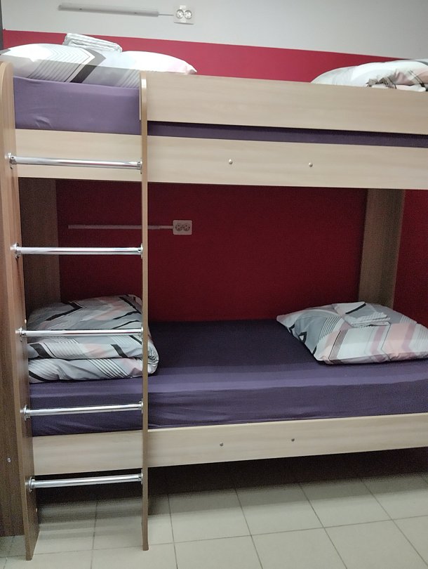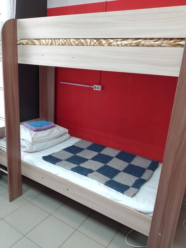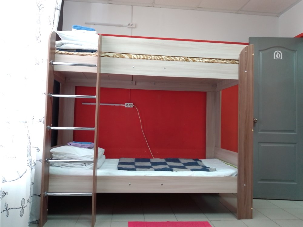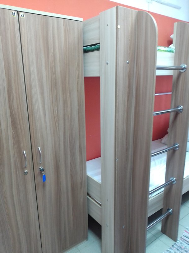 Комфортный просторный номер. Есть все не обходимое для проживания(умывальник,индивидуальный шкафчик с ключом, прикроватные розетки и светильники.В номере
