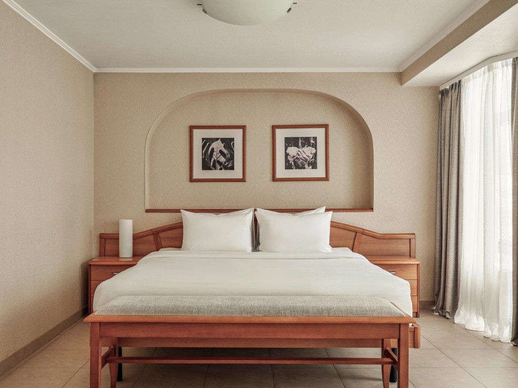 Все номера оснащены кондиционером, телевизором, мини-баром, чайной станцией и капсульной кофе-машиной.
