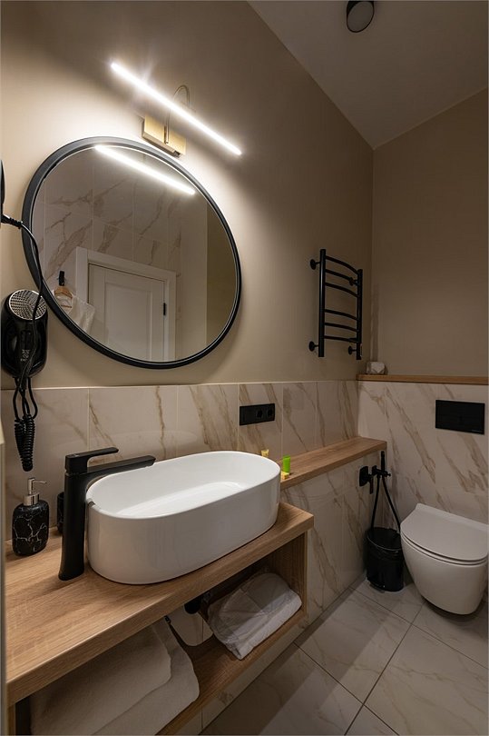 телевизор, Wi-Fi, телефон, холодильник, кондиционер, светильник, настольные лампы, фен, будильник, микроволновая печь, обогреватель, ванная комната, банные принадлежности, халаты, банные полотенца, тапочки, косметические средства, кровать «King size», диван, стулья, шкаф для одежды, гардеробная, журнальный столик, письменный стол, обеденный стол, багажная тумба, зеркало, пуфики, две комнаты, чайный набор, набор посуды, сейф, чайник, косметическое зеркало, обеденная зона, гостиная зона, кулер на этаже, вид на реку, кресло, высокие потолки, кухонная посуда, мини-кухня, москитная сетка, уборка номера, услуги прачечной (платно), бутилированная вода, можно с питомцамиВ номере