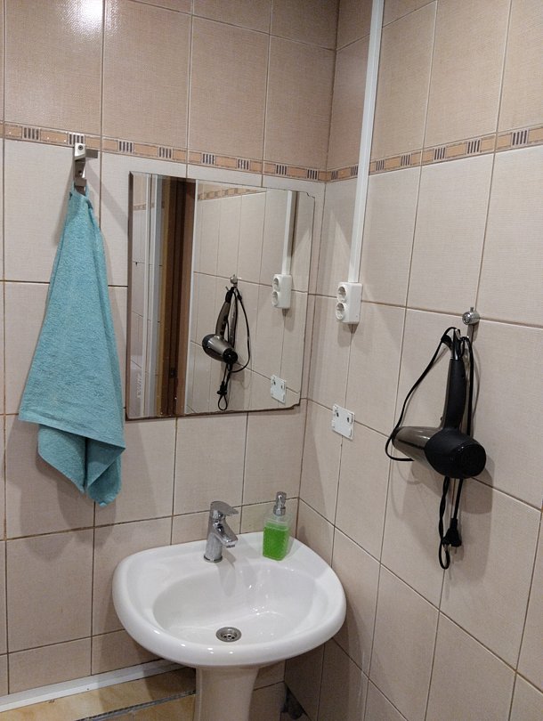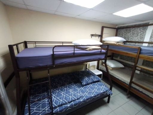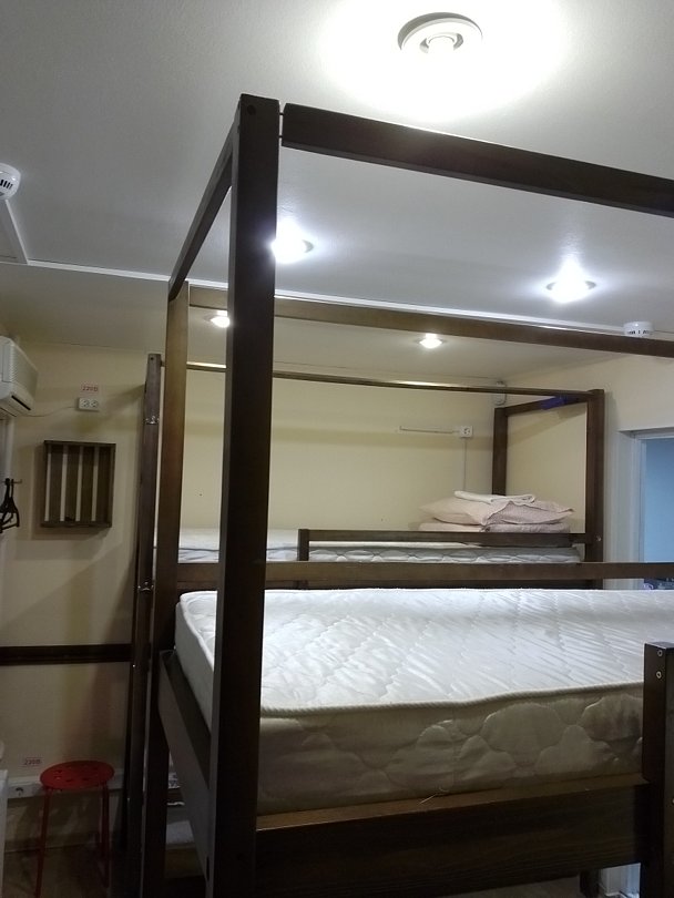 .Шестиместный мужской номер, три двухъярусные кровати. В номере кондиционер, индивидуальное освещение, розетки, шкафчики, постельное белье, ,одеяло. подушки, вешалка.. Балкон.В номере