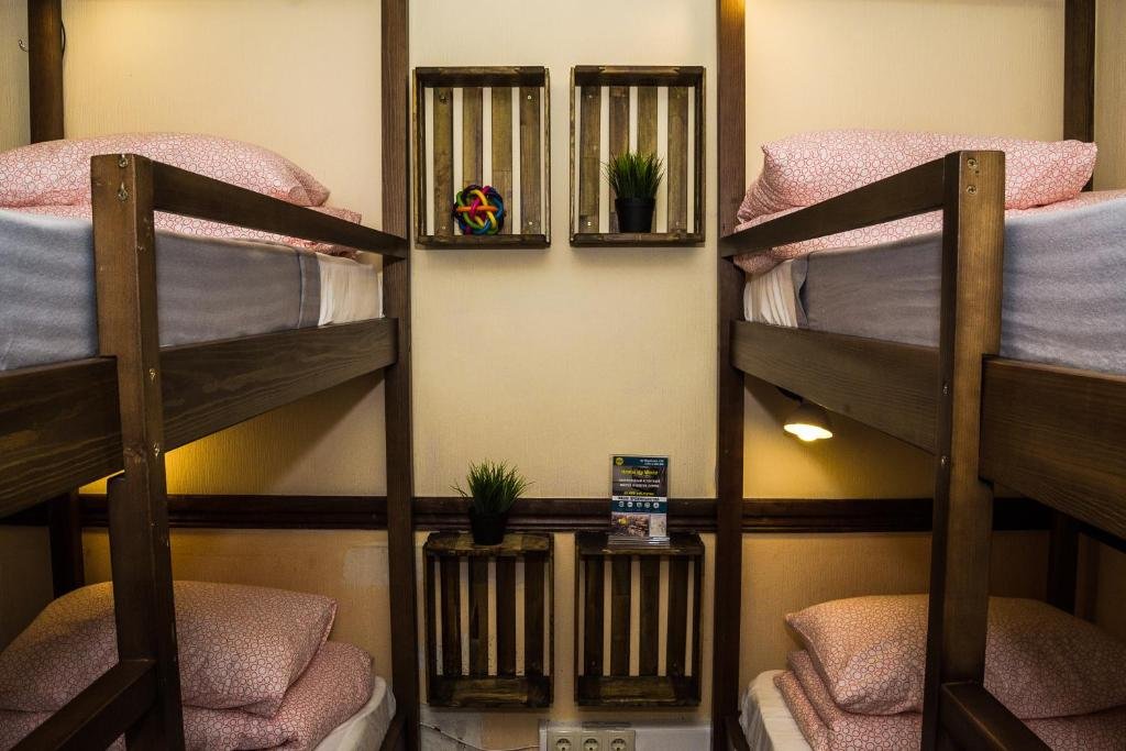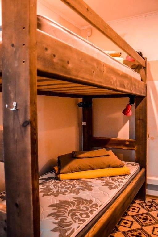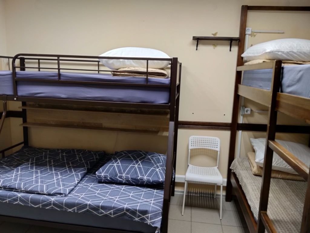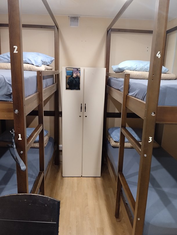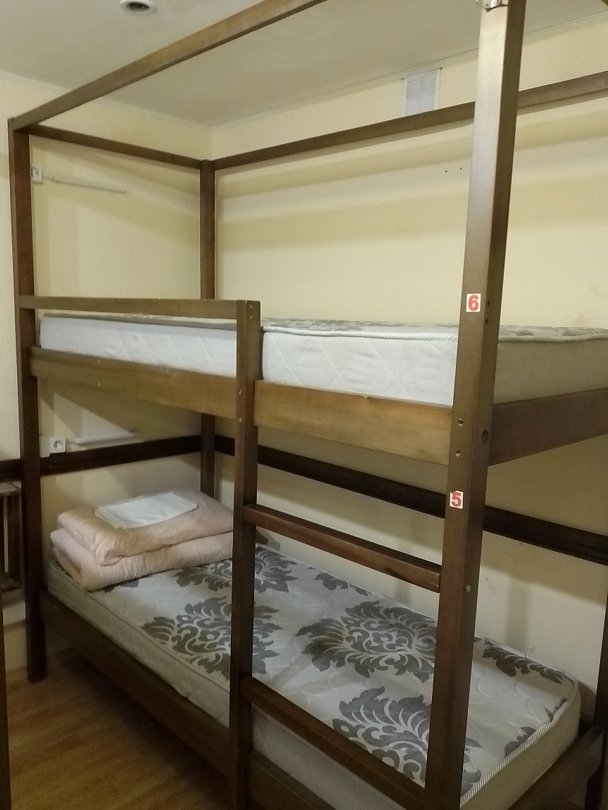 ...Шестиместный номер, три кровати двухъярусных, матрасы, одеяло, подушки. Индивидуальные шкафчики, комфортное постельное белье.В номере