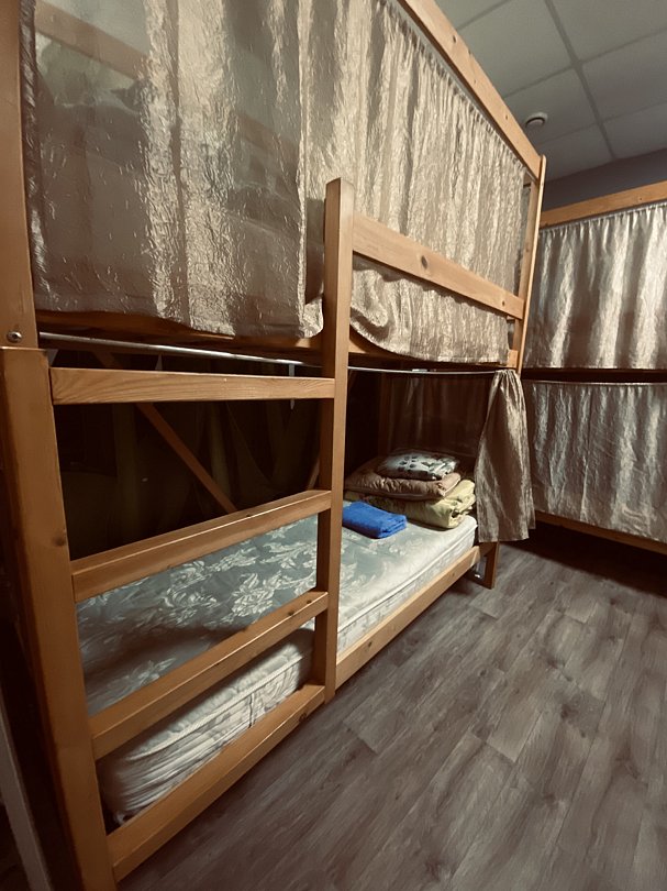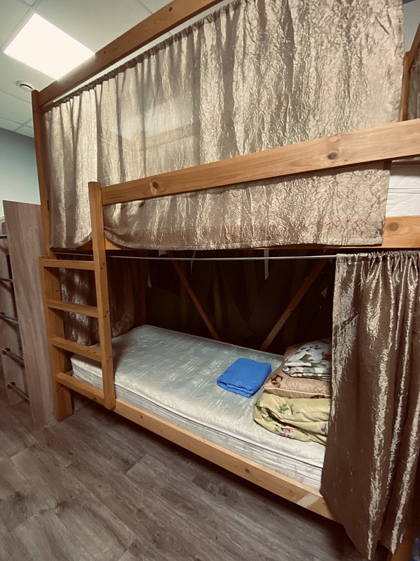 Койко-место в 10 местном общем номере. Каждое место оборудовано-матрас,одеяло, подушка, постельное белье. Индивидуальные шкафчики, освещение и розеткиВ номере