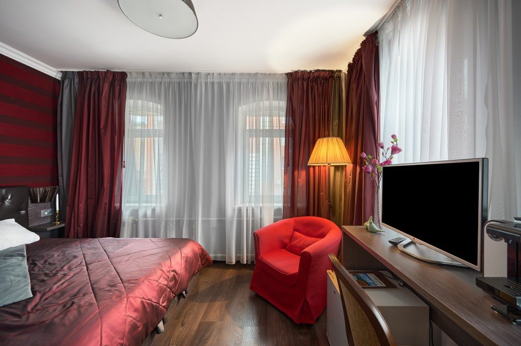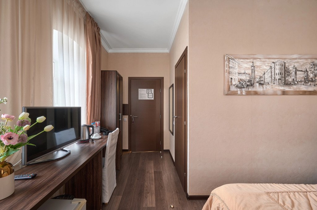 В номере гостей ждут телевизор и халат. Оснащение зависит от выбранной категории номера.