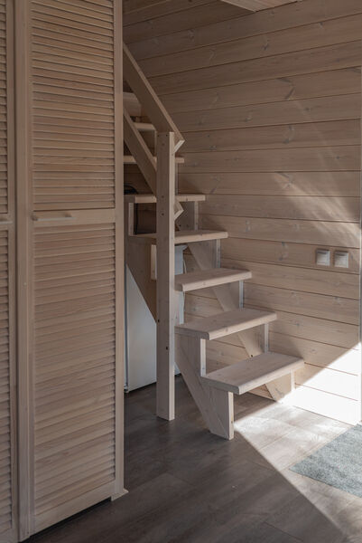 Дом один, двухэтажный. В доме есть: деревянная двуспальная кровать, на первом этаже двуспальный диван, предоставляются гипоаллергенные подушки и одеяла, постельное бельё из 100% хлопка. Имеется кухня с электрической плитой, холодильником с морозильной камерой, кастрюлями, сковородками и прочей посудой, вплоть до досок, тёрок и штопора. В санузле душевая кабина, туалет, горячая вода, фен, полотенце, туалетные принадлежности. Помимо этого есть шкаф для одежды, вешалки, два стола: большой и маленький, табуретки и кресла.