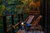 Большая крытая веранда оборудована столом и стульями — отличное место для отдыха после парной.