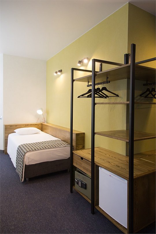 Wi-Fi, телефон, светильник, фен, вентилятор, будильник, электронные замки, душевая кабина, халаты, банные полотенца, гигиенические средства, односпальная кровать, шкаф для одежды, вешалки, багажная тумба, зеркало, обслуживание номеров, информационная карта, меню, унитаз, раковина, питьевая вода, ковровое покрытие, стул, стол, телевизор с плоским экраном, мини-холодильник, оснащение для гостей с ограниченными возможностями, можно с питомцамиВ номере