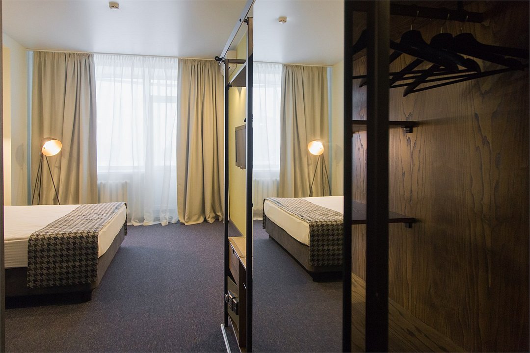 Небольшой балкон является как украшением, так и достоинством комнаты с двумя раздельными односпальными кроватями, в которой также имеется все необходимое для работы и отдыха: телевизор, телефон, холодильник, сейф, кондиционер, душевая кабина, фен, стол для работы. В стоимость входит завтрак в ресторане «Европейский». Ежедневно с 07:00 до 10:00. Room service - круглосуточный заказ в номер любых блюд и напитков по меню ресторана "Европейский".Услуги и удобства