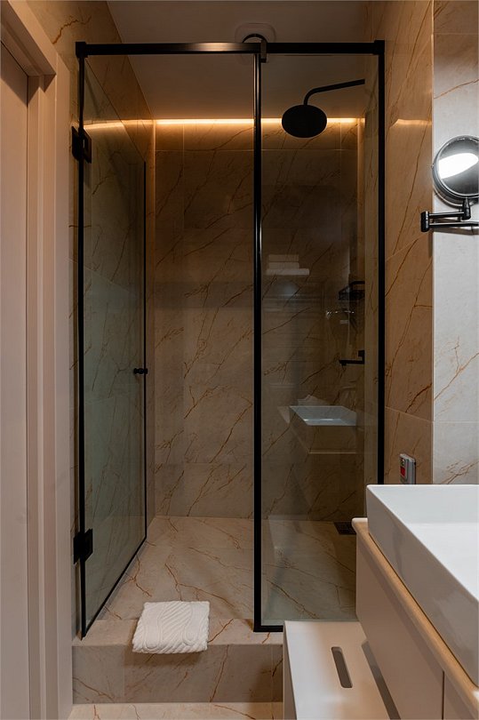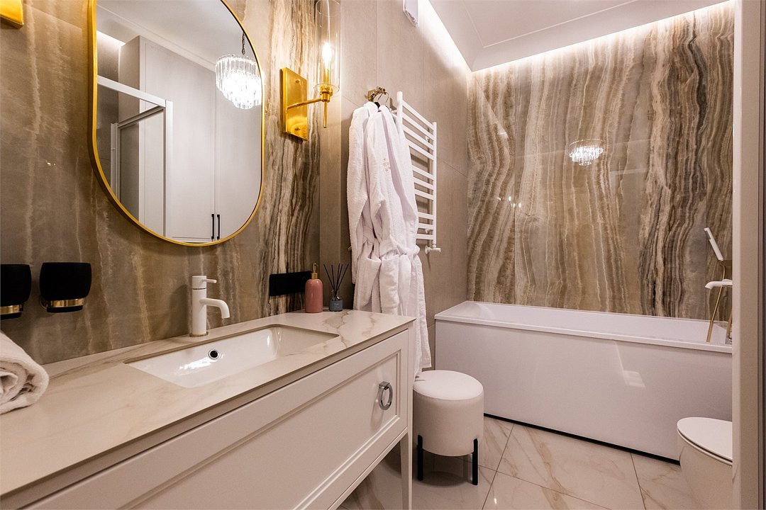 Идеальное сочетание элегантности, стиля и комфорта. Одна большая комната с панорамными окнами, а также балкон с лаунж-зоной. Визуальное разделение пространства: спальня и гостиная с мини-кухней. Просторный санузел: ванна + душевое ограждение, полноценная умывальная зона с большой столешницей для туалетных принадлежностей.Услуги и удобства