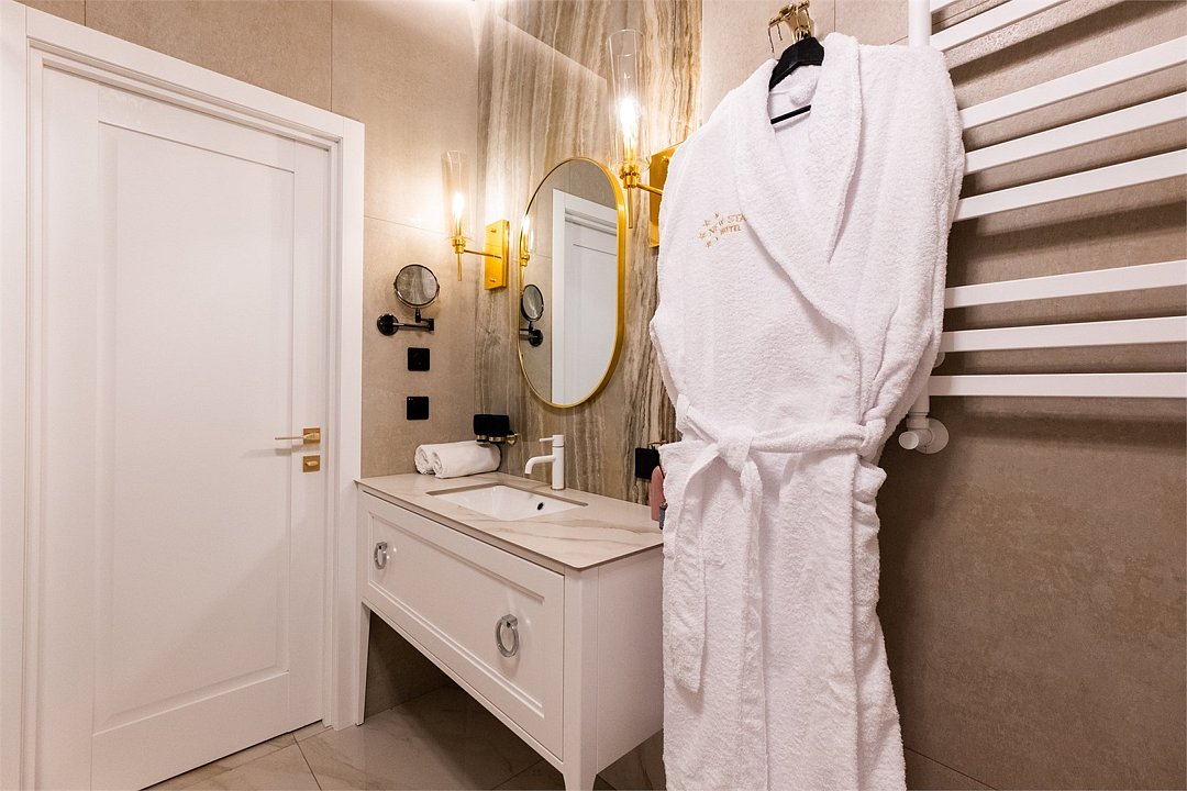 Располагающие к комфортному отдыху комнаты достаточно большой площади, различных цветовых гамм. Мебельный гарнитур из белой кожи является несомненным украшением интерьера. В номере: телевизор, DVD плеер, холодильник, телефон, сейф, кондиционер, просторный балкон, ванна, беде, фен. В стоимость входит завтрак в ресторане «Европейский». Ежедневно с 07:00 до 10:00. Room service - круглосуточный заказ в номер любых блюд и напитков по меню ресторана "Европейский".Услуги и удобства